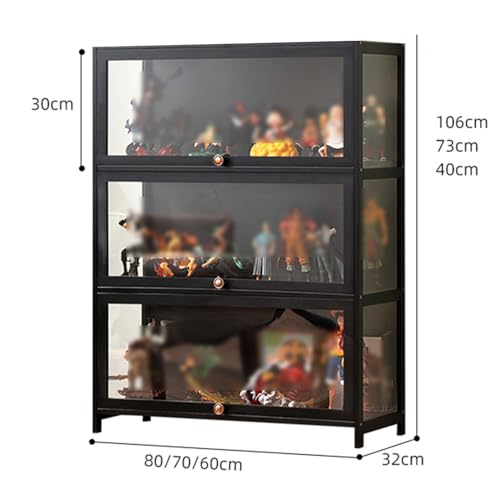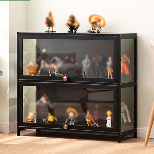 HARELA - خزانة عرض مع باب خزانة اكريليك، حافظات عرض من الخيزران الطبيعي للمقتنيات، خزانة عرض 1/2/3 طبقات، رف كتب وخزانة كتب لغرفة اللعب وغرفة النوم، حافظة عرض الكؤوس (الحجم: 80 × 73 × 3