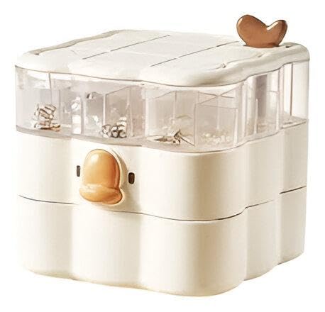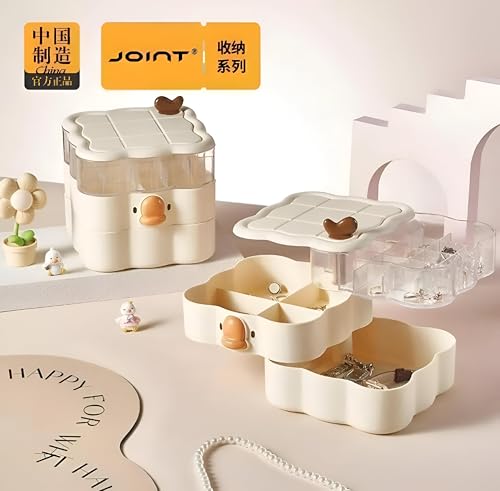 - تتضمن أربع مساحات تخزين مخصصة لفصل المجوهرات ومستحضرات التجميل، إلى جانب طبقة مسطحة كبيرة قادرة على تخزين الأشياء الأكبر حجمًا مثل المساحيق والأساور، مما يعزز التنظيم العام.