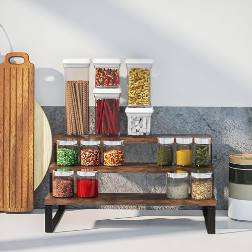 - يسمح الهيكل المدروس المكون من ثلاث طبقات بتخزين متعدد الطبقات لرؤية جميع التوابل أو العناصر والوصول إليها بسهولة في لمحة. تستوعب ارتفاعات الأرفف المختلفة البرطمانات والحاويات بأحجام مختلفة، مما يزيد من مساحة التخزين الرأسية دون شغل مساحة إضافية على الطاولة.