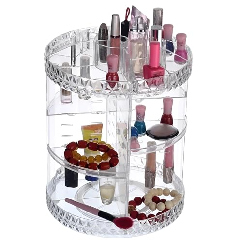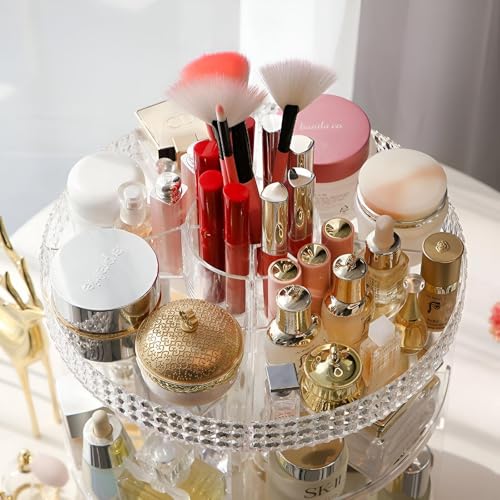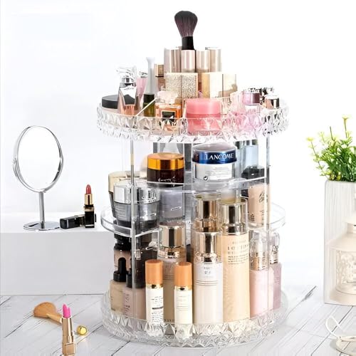 Generic - حامل عرض بتصميم شفاف من الأكريليك من 3 طبقات، حامل مستحضرات تجميل دوار 360 درجة مع ارتفاع قابل للتعديل، مثالي للتخزين المنظم للمكياج والمجوهرات وزجاجات العطور