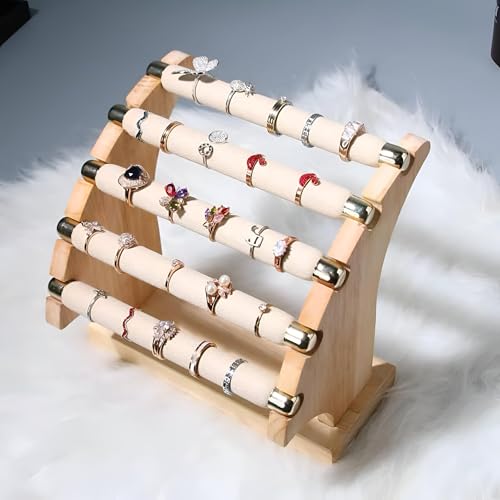 Generic - حامل عرض - حامل حلقي خشبي عملي مع صندوق واسع من طبقتين من جلد البولي يوريثين، مما يخلق حلاً أنيقًا لعرض المجوهرات. (حامل حلقي (الخيار 2))