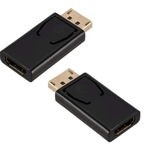 AOUZOVLI - محول ديسبلاي بورت إلى HDMI، يدعم دقة 1080 بكسل مع خاصية التوصيل والتشغيل، متوافق مع ديل، لينوفو، اتش بي، وحدة معالجة الرسومات، وحدة معالجة ايه ام دي، أسود، عبوة من قطعتين