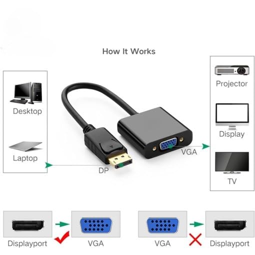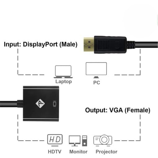 Generic - محول منفذ عرض الى VGA نشط، FHD 1080P @60Hz، محول فيديو رقمي الى تناظري، التوصيل والتشغيل