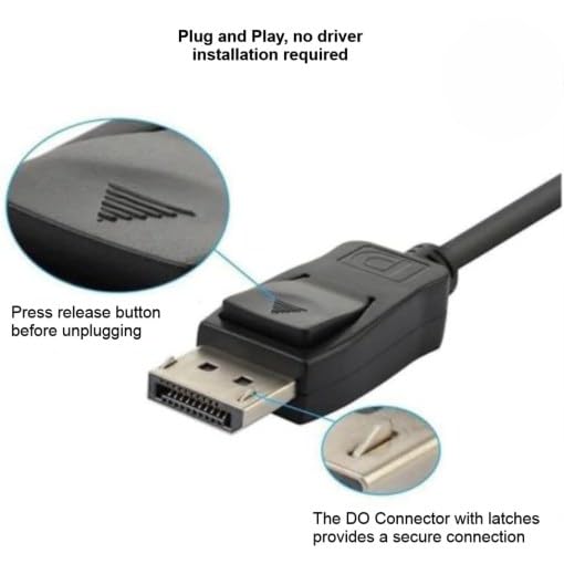 - موصل منفذ عرض آمن مع آلية قفل لاتصال مستقر