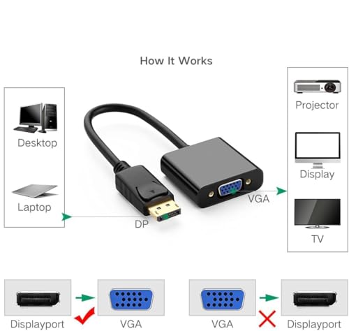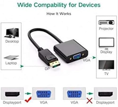 Generic - محول منفذ عرض الى VGA ذكر انثى 1080P متوافق مع الكمبيوتر المكتبي واللابتوب والكمبيوتر الشخصي والشاشة وجهاز العرض وتلفزيون HD