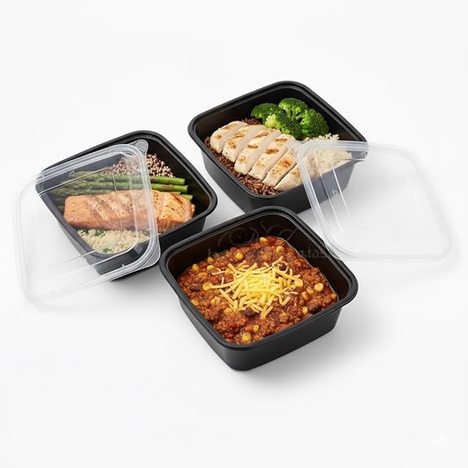 - هيكل متين: مصنوع من مادة بلاستيكية سوداء متينة تحافظ على شكلها وسلامتها، مثالية لتخزين الأطعمة المختلفة من السلطة إلى الوجبات الساخنة