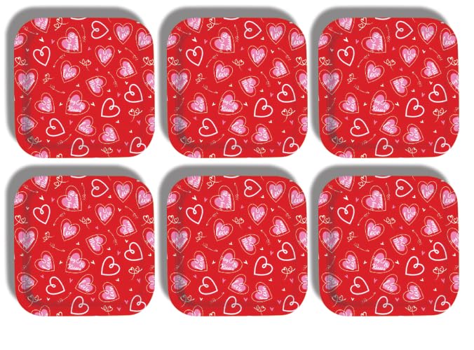 Generic - اطباق ورقية للاستعمال مرة واحدة، احمر مع قلوب وردية وبيضاء، موضوع عيد الحب، عبوة من 6 قطع