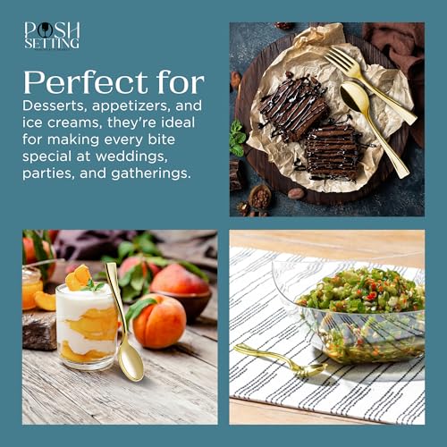 Posh Setting - معالق بلاستيكية صغيرة للاستعمال مرة واحدة، معالق تذوق بلاستيكية ذهبية، 72 قطعة، 10سم، رائعة للحلويات أو أخذ العينات أو المقبلات - بوش سيتينج