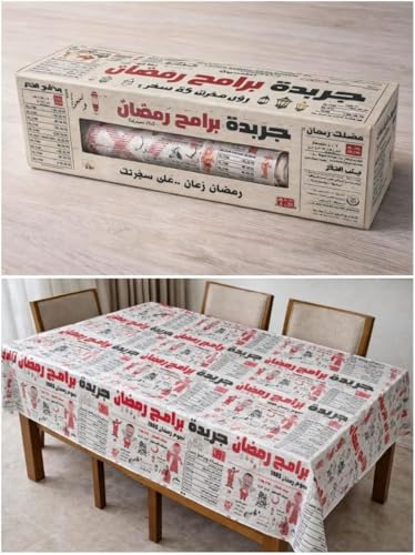 - رول مفرش طاولة مزين بنقوش رمضانية: مثالي للإفطار والسحور والتجمعات الاحتفالية، يتميز بتصاميم مبهجة تضيف اللون والبهجة إلى مائدة طعامك مع حماية الأسطح.