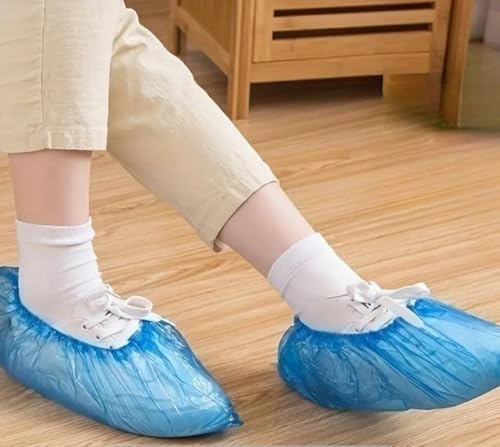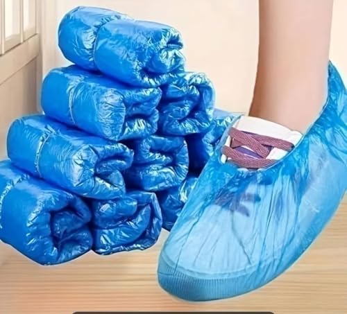 Generic - أغطية أحذية مقاومة للماء للاستخدام مرة واحدة، أغطية أحذية بلاستيكية زرقاء مع شريط مطاطي، 5 أزواج