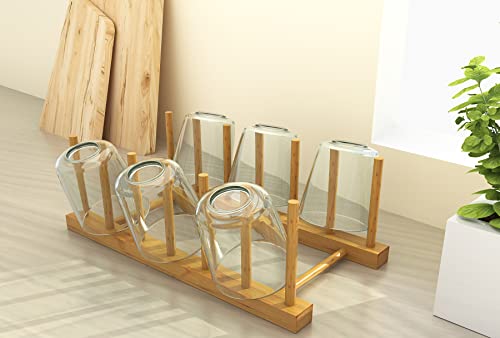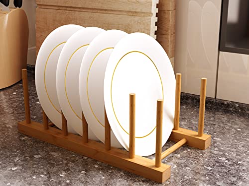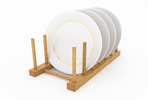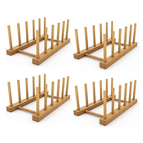 Disracker - 4 عبوات من حامل اطباق الخيزران حامل اطباق حامل لوحة تجفيف الاكواب لوح تقطيع السلطانية منظم خزانة المطبخ 5 فتحات، بامبو، بيج