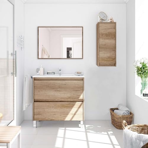Habitdesign - فرشاة حمام قابلة للتعليق جيونون S04 من ديستريموبيل، مقاس 30 × 26 × 74 سم ارتفاع، بلوط، ميلامين، من هابيت ديزاين، بني