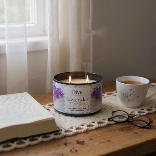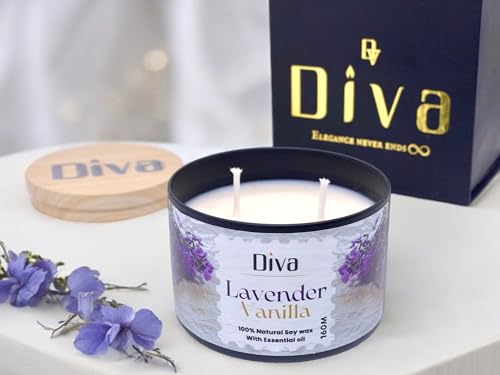 Generic - شمعة فاخرة 200 مل من ديفا | جودة ممتازة | برطمان معطر أنيق | وقت احتراق طويل | لهب نظيف | مثالية للمنزل والمنتجعات الصحية والهدايا ورمضان والعيد وعيد الأم وأعياد الميلاد (لافندر فانيلا)