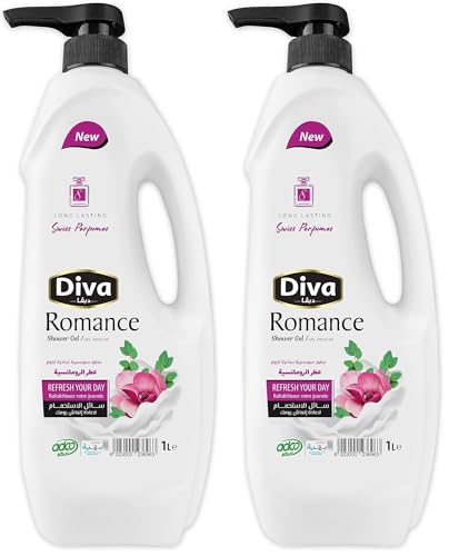 Diva - جل استحمام رومانس من ديفا، سعة 1 لتر (عبوة من قطعتين)