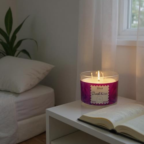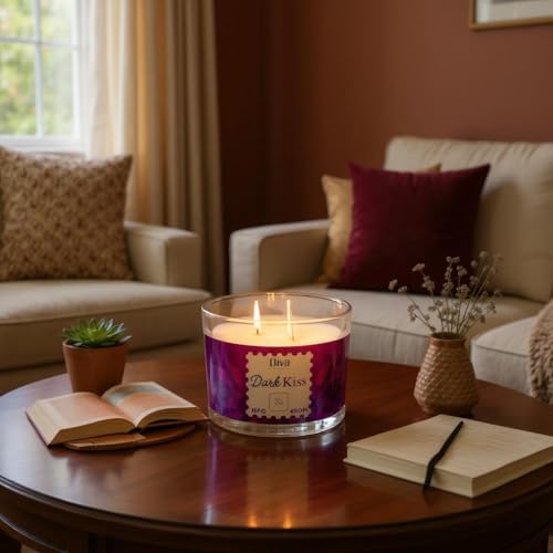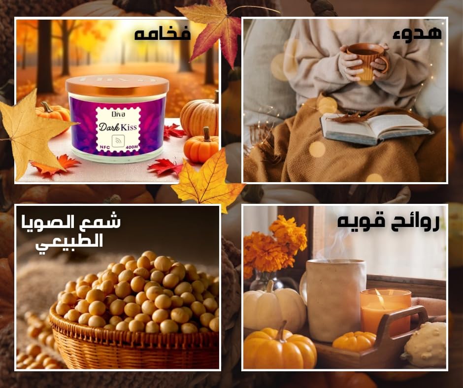 Generic - شمعة معطرة فاخرة 400 جم | عطر قوي للزيوت العطرية | برطمان أنيق 3 فتائل مع رسالة مخفية إن إف سي | احتراق نظيف | مناسبة للمنزل والمنتجعات الصحية والهدايا ورمضان وأعياد الميلاد من ديفا كاندلز (دارك كيس)