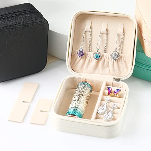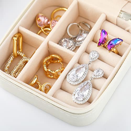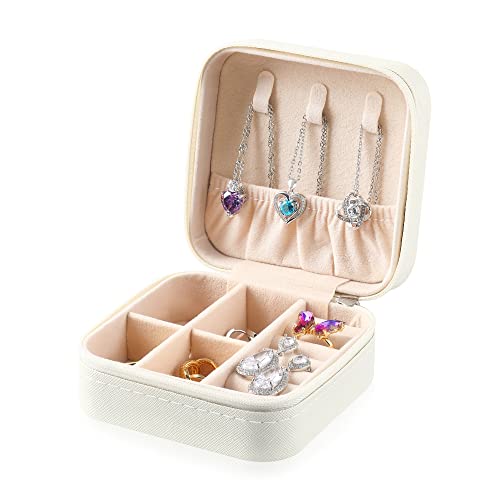 Divani - صندوق تنظيم مجوهرات صغير، شنطة مجوهرات للسفر، صندوق تخزين مجوهرات محمول للنساء والبنات للحلقان والخواتم والسلاسل والأساور والإكسسوارات من ديفاني - أبيض