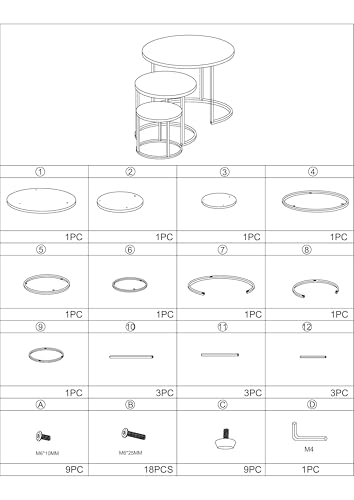 - سهلة التجميع - يتم تجميع هذه الطاولات الدائرية المتداخلة في دقائق! ببساطة استخدم الأدوات المتضمنة لربط القطع معًا.