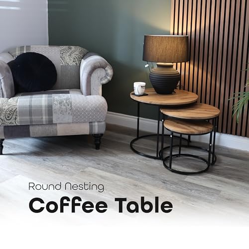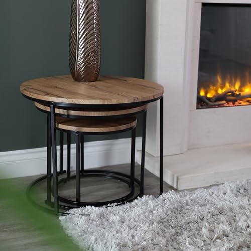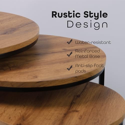 - جودة وأناقة - هذه المجموعة المكونة من 3 طاولات جانبية مصنوعة من مظهر خشبي متين مع أرجل معدنية دائرية تتميز بتصميم مبطن نظيف. يمكن الاحتفاظ بالطاولات معًا أو استخدامها بشكل منفصل في أماكن مختلفة داخل الغرفة للحصول على مظهر أكثر تناسقًا.