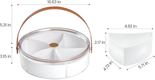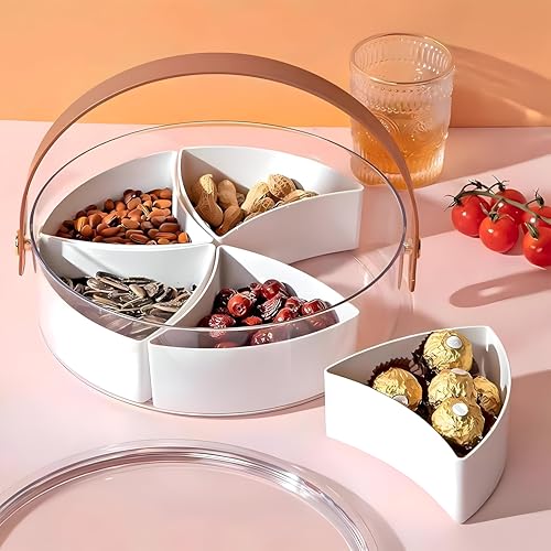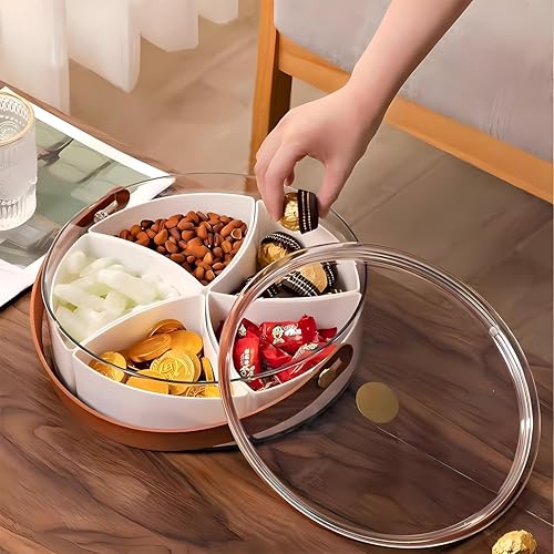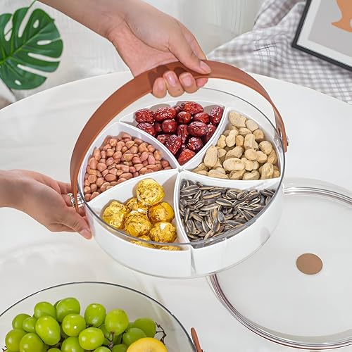 - تصميم شفاف مع خمس مساحات تخزين قابلة للإزالة يتيح لك رؤية ما بداخله بالضبط دون فتح الغطاء، مما يجعله مثاليًا لتنظيم الوجبات الخفيفة والفواكه والمكسرات والحلوى في الحفلات أو النزهات أو التجمعات العائلية.