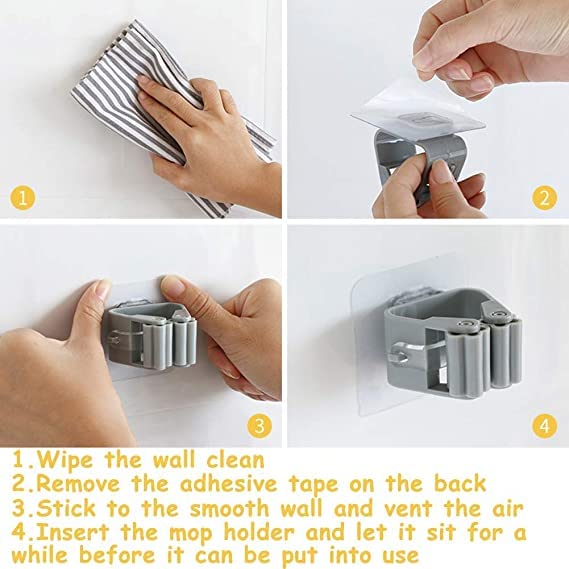 - قم بلصقها على الحائط باستخدام لاصق ذاتي قوي يحافظ على الممسحة في مكانها بإحكام ويحميها من السقوط. لا داعي للقلق من أن حامل ممسحة المكنسة سيتلف جدار المنزل. لا يحتاج إلى ثقب لتركيبه، الجزء الخلفي من حامل ممسحة المكنسة يحتوي على مادة لاصقة، ويمكن تركيبه في بضع ثوانٍ.