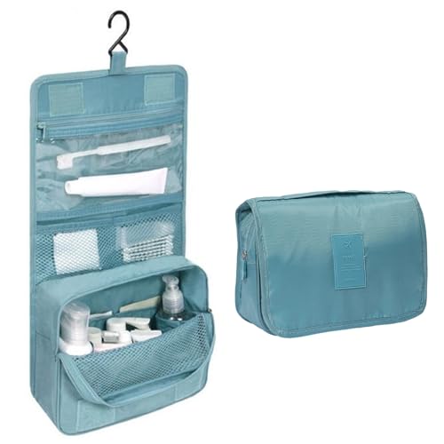 Divono - شنطة سفر معلقة لأدوات الزينة من ديفونو، بسعة كبيرة لتنظيم مستحضرات التجميل، مزودة بلوحة سفلية قابلة للطي، مثالية للسفر والاستخدام اليومي والجيم والعطلات (أزرق)