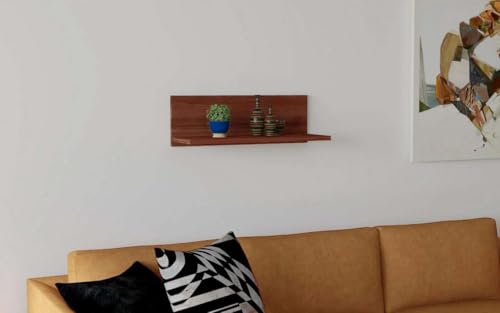 DIVYSA - رف حائط معلق على شكل حرف L من الخشب الهندسي من ديفيسا كورب، رف حائط عائم لرف العرض وديكور القاعة وغرفة المعيشة والاثاث المنزلي، عبوة من قطعة واحدة (60 × 21.6 × 19.6 سم، جوزي)