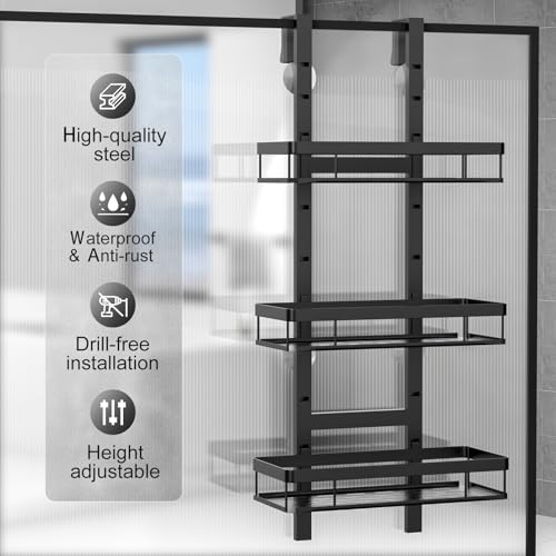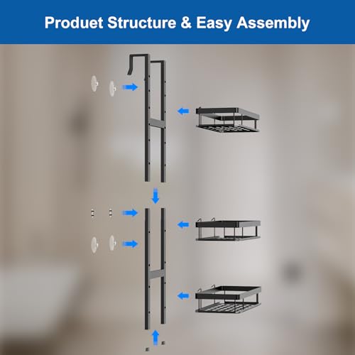 Diwoker - رف دش للتعليق من ديووكر بدون ثقب منظم حمام مع 3 سلال حامل شامبو للاستحمام اسود
