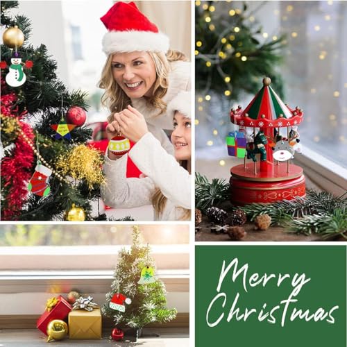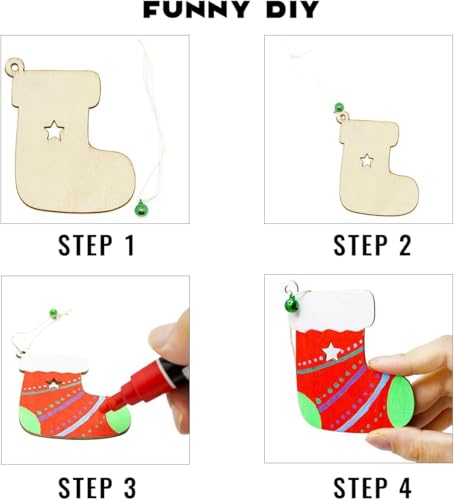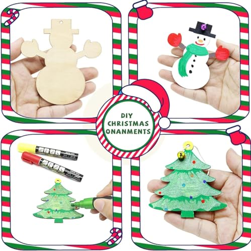 Generic - مجموعة زينة الكريسماس ذاتية الصنع، أشكال خشبية غير مكتملة مع أجراس وخيوط و10 تصاميم احتفالية لتزيين العطلات، 40 قطعة