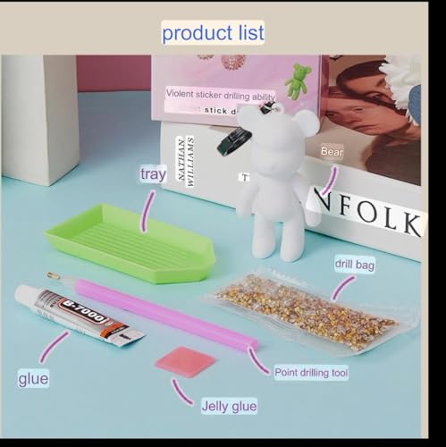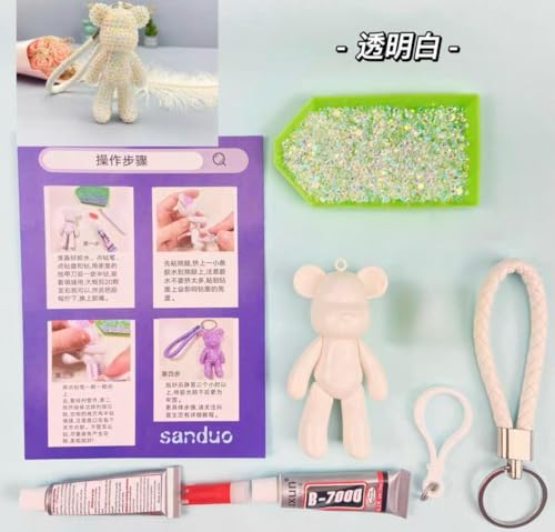 Generic - سلسلة مفاتيح على شكل دب ماسي يمكنك صنعها بنفسك مناسبة للأشخاص الذين يستمتعون بالصناعة اليدوية والفن، قطعة واحدة بألوان مختلفة