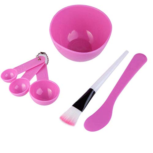Generic - مجموعة وعاء خلط قناع الوجه DIY مع فرشاة سيليكون لقناع وأداة توزيع الملعقة زهري