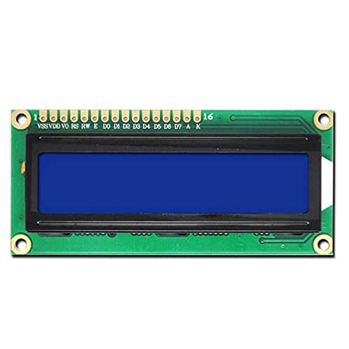 - شاشة LCD مقاس 2×16 مع إضاءة خلفية زرقاء. شاشة ال سي دي متوافقة مع HD44780 مقاس 16x02 باللون الأزرق، جهد التشغيل 5 فولت. أبعاد الوحدة 80 × 36 × 13.5 ملم.