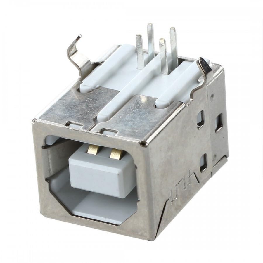 - موصل USB أنثى من النوع (B)، 4 دبابيس DIP، حامل PCB بزاوية قائمة.