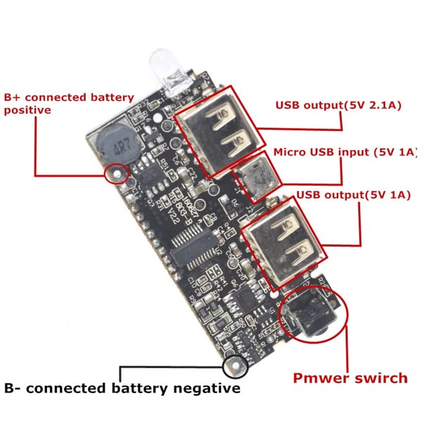 - تأتي اللوحة الأم مع وظائف الحماية: حماية من الشحن الزائد وحماية من التفريغ الزائد وحماية من التيار الزائد. جهاز إخراج ذكي بعد الشحن الكامل، يتوقف تلقائيًا عن الشحن، لمنع الهواتف المحمولة من الشحن الزائد. الجهد الكهربائي الناتج والتيار مستقران، ولن يضر أجهزة المستخدم.