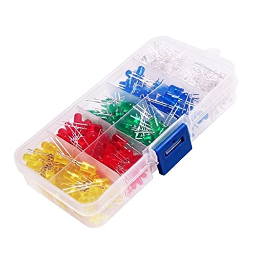 DIY-Kit - مجموعة تركيب مصابيح ليد للمشاريع اليدوية - عبوة كبيرة مختلطة من مصابيح ليد (300 مصباح) مع علبة تخزين مجانية من داي كيت، (لون أحمر وأصفر وأبيض وأخضر وأزرق، مقاس 3 ملم و5 ملم، عبوة من 200 قطعة)