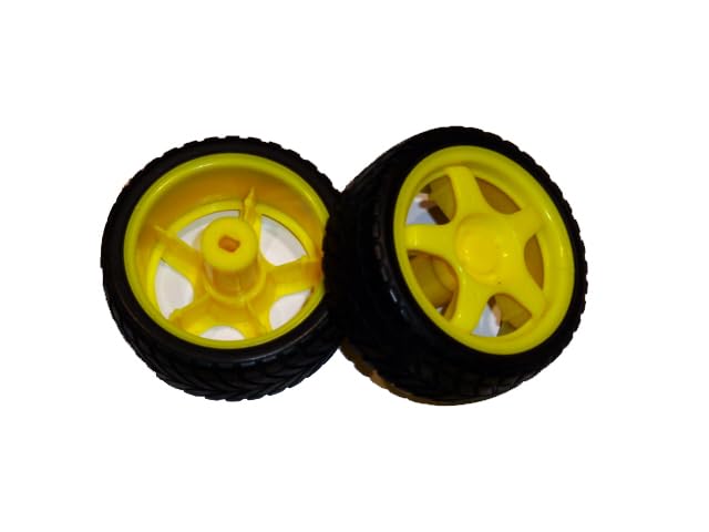- عجلات روبوت 65 × 26 ملم لصندوق التروس ميني دي سي أصفر للسيارات (2 إطارات) RW002