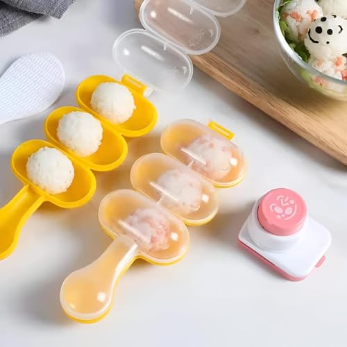 Generic - قالب صنع الأرز اليدوي - كرة خفق الأرز المبتكرة مع معلقة مسطحة لصنع كرات أرز لاصقة لذيذة بدون مجهود مع مغرفة أرز صغيرة للحصول على اونيجيري مثالي في كل مرة (قطعتان)