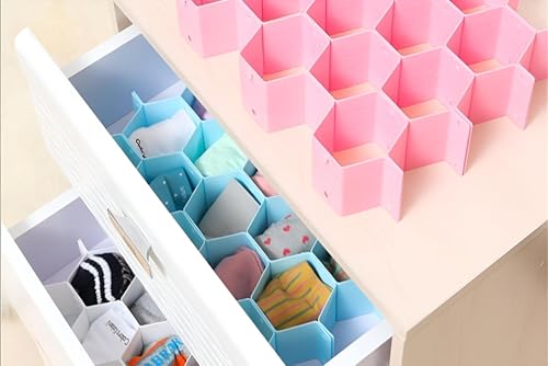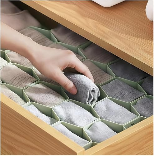 Generic - منظم يدوي - نظام تقسيم مرن على شكل قرص العسل مع 8 ملحقات قابلة للتعديل لتسهيل الوصول اليومي إلى الشرابات والكرافتات والاكسسوارات، مع تعزيز جماليات الجزء الداخلي من الدرج