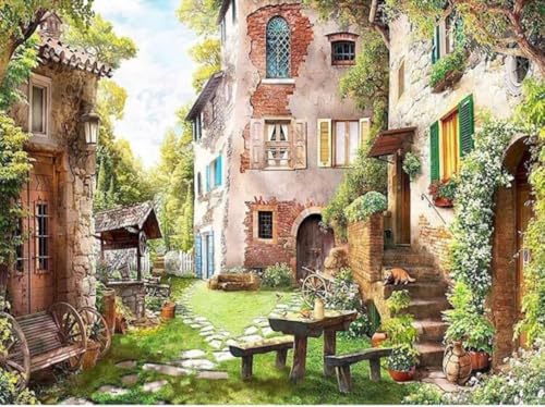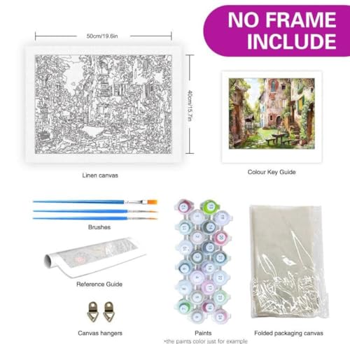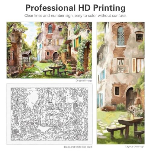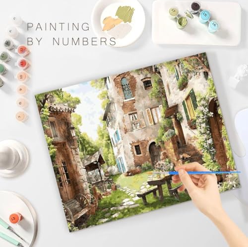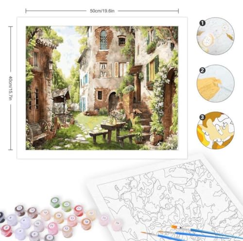 Generic - مشهد فناء أوروبي عتيق من قماش كانفاس 40 × 50 سم مع فرش، مجموعة طلاء بدليل مرجعي ومشروع فني للمبتدئين الكبار، طقم الرسم بالأرقام لتصنعه بنفسك
