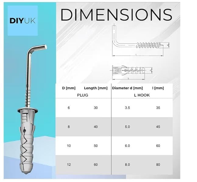 Generic - DIY UK خطافات تعليق على شكل حرف L مع قابس M6×30 ملم، علاقة حائط بخطافات مربعة، عبوة من 5 قطع