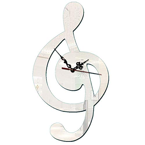 Other - ساعة حائط إبداعية كبيرة بنمط نوتة موسيقية ثلاثية الابعاد بتصميم مراة عصرية صامتة لديكور المنزل، أكريليك، تناظري، فضي