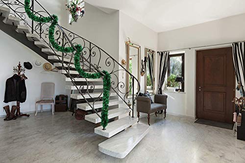 - إكليل الكريسماس مصنوع من زينة الكريسماس عالية الجودة كثيفة وسميكة جدًا، تبدو رائعة وألوان نابضة بالحياة جميلة تتميز بلمعان فاخر. تصميم طويل بما فيه الكفاية 6.09 متر ويسهل قصه إلى قطع مختلفة.