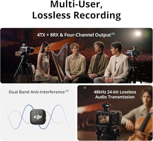 - قدرة 4TX + 8RX ومخرج رباعي القنوات [1] - يمكن أن يقترن مستقبل ميكروفون لافالير هذا مع 4 TX ومزامنة الصوت مع 7 ار اكس إضافية - مثالي للبودكاست أو المقابلات الجماعية.