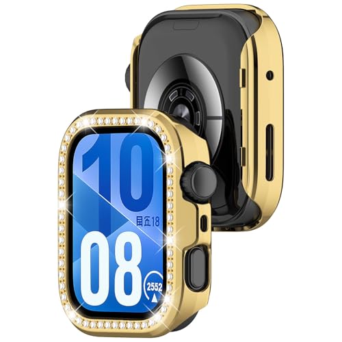 Dl3 Mobilak - دلـع موبايلك جراب بلينج بدون شاشة حماية لساعة هواوي فيت 4، اطار صلب من البولي كربونات، غطاء ممتص للصدمات مرصع بالالماس الكريستالي للنساء والفتيات، غطاء واقي رفيع لساعة هواوي فيت 4 (ذهبي)