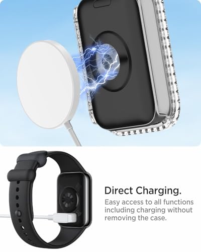 - تصميم فاخر وأنيق ولامع - أحجار الراين الماسية المبهرة مرصعة على جراب الحماية المصنوع من البولي كربونات الصلب، لتتلألأ ببراقة خاصة تحت أشعة الشمس أو الإضاءة القوية. مظهر أنيق ورقيق وجميل يجلب لك الكثير من الإطراء، يمكن استخدامه لإطلالة مثالية للعمل والحفلات وأوقات الفراغ اليومية. يجعل ساعتك أكثر عصرية وإشراقًا في أي مناسبة، ويُضفي لمسة من التألق على حياتك، كما يحمي الساعة من الخدوش والسقوط.