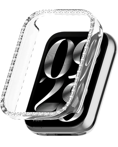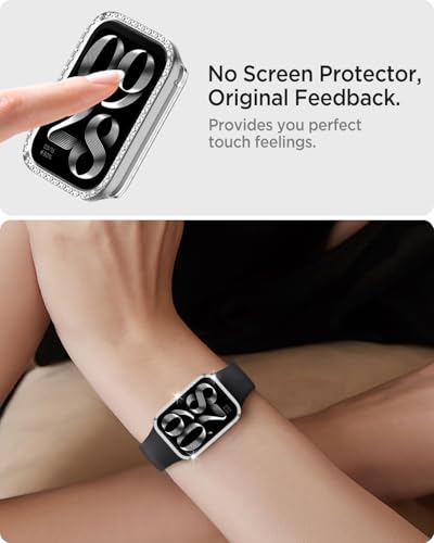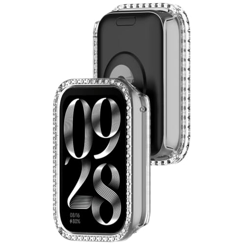 Dl3 Mobilak - جراب بلينج بدون واقي شاشة لساعة شاومي سمارت باند 9 برو، إطار صلب من البولي كربونات، غطاء ممتص للصدمات مرصع بالألماس الكريستالي للنساء، غطاء واقي رفيع لساعة شاومي مي باند 9 برو من دلع موبايلك (شفاف)