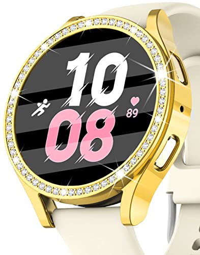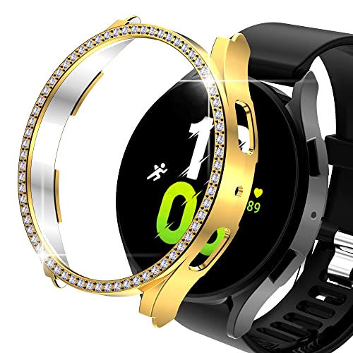 Dl3 Mobilak - حافظة حماية ممتصة للصدمات من بلاستيك البولي كربونات مرصعة بكريستالات ماسية لساعة سامسونج جالاكسي 4 كلاسيك 46 ملم من دلع موبايلك (ذهبي)