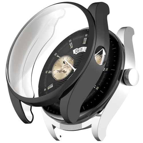 Dl3 Mobilak - جراب حماية متوافق مع ساعة هواوي ووتش، غطاء حماية من السيليكون والبولي يوريثين الحراري الناعم مقاوم للصدمات والخدوش بتغطية كاملة لسماعات هواوي ووتش بادز من دلع موبايلك (أسود)