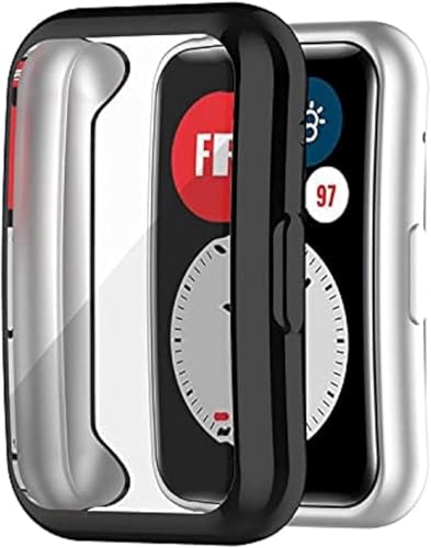 Dl3 Mobilak - جراب حماية متوافق مع ساعة هواوي ووتش فيت شاشة شاملة من البولي يوريثين الحراري الناعم غطاء رفيع ممتص للصدمات دلع موبايلك لون أسود
