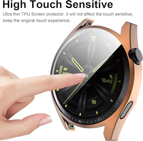 Dl3 Mobilak - جراب حماية متوافق مع ساعة هواوي GT3 46 ملم بحماية كاملة للشاشة بولي يوريثين مقاوم للحرارة مضاد للصدمات ناعم بتصميم رفيع وممتص من دلع موبايلك روز جولد
