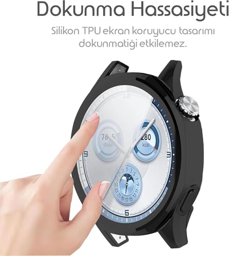 Dl3 Mobilak - جراب حماية متوافق مع ساعة هواوي GT5 46 ملم بحماية كاملة للشاشة، جراب بولي يوريثين مقاوم للحرارة مضاد للصدمات ناعم بتصميم رفيع وممتص للصدمات من دلع موبايلك، أسود